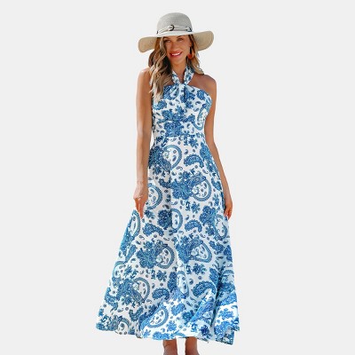 Women's Elegant Navy Ethnic Floral Print Maxi Dress with Billowing Sleeves - Cupshe - 2 of 4Women's Elegant Navy Ethnic Floral Print Maxi Dress with Billowing Sleeves - Cupshe - 3 of 4Women's Elegant Navy Ethnic Floral Print Maxi Dress with Billowing Sleeves - Cupshe - 4 of 4