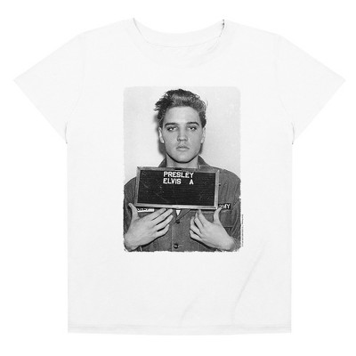 Women's Elvis Presley Army Mug Shot Dylan Short Sleeve Crop Top, White, X Small