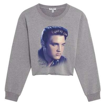 Women's Elvis Presley Blue Hawaii Crop Sweatshirt, Athletic Heather, X Small