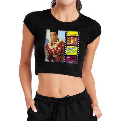 Women's Elvis Presley Neon Elvis Cap Sleeve Baby Rib Crop Top Black Large