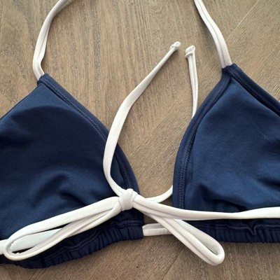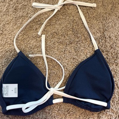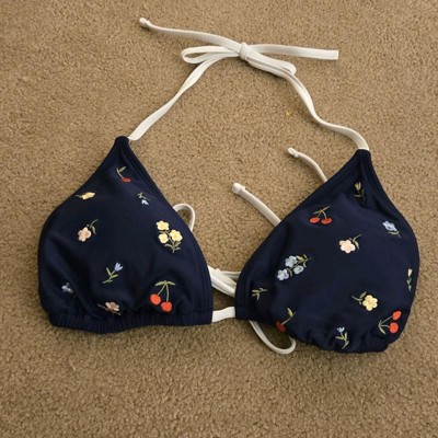[This review was collected as part of a promotion.] This is the wild fable embroidered cherry and flower medium coverage triangle bikini top in size small color is navy. I am 5‘4“ tall and about 135 pounds and typically wear a size small. This top fits great, I really like that. It has removable pads. I love the embroidery that’s on it. And the fact that the triangles are adjustable across the chest. I do recommend this top. it’s super cute and fun. I received an incentive to write this review.