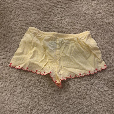 [This review was collected as part of a promotion.] I ordered a size Small (4-6), my usual pant size is a 4. I wanted to love these cover up shorts by Wild Fable but they just aren’t my favorite. I struggle with this brand sometimes, I find the quality to be missing the mark. The shorts themselves are really cute, I love the heart embroidered detail on the leg openings and the cute yellow color. But I just find these to be thin and not well made. I do like the functional draw string on the waist