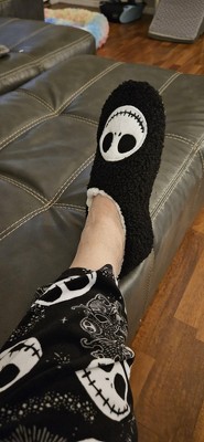 Women's Embroidered Plush Nightmare Before Christmas Slipper Socks with Faux Suede Soles & Grippers - Black