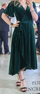 I ordered both the emerald green and red versions of this dress. I figured if I loved it in one color I should have both because I’m picky about dresses. The red arrived first and I am in LOVE. It’s perfect for the holidays. It fits so well. I sized up and got a large but probably could have gotten medium… I wasn’t sure the sizing of the brand. It does run true to size. All in all this dress is fantastic. And very good quality! I’m excited to wear the green to a wedding this fall.