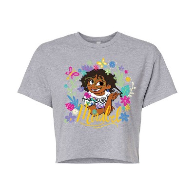 Encanto - Mirabel Emotions - Juniors Cropped Cotton Blend T-Shirt - Experience the magic of Encanto with graphic apparel that features the Madrigal family. Celebrate the vibrant, magical energy of this beloved Disney film with colorful designs.
