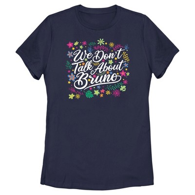 Join the Madrigal family for some magical and musical fun in the mountains of Colombia in Disney's new hit film Encanto! This officially licensed Women's No Se Habla De Bruno Tropical Leaves Tee features a graphic of Bruno Madrigal with the phrase "No Se Habla de Bruno" alongside colorful leaves, flowers, and nature patterns. Grab this new t-shirt today and show your love for your new favorite Disney movie!