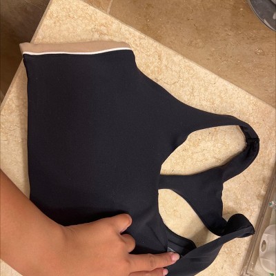 • Must-have features: quick drying, moisture wicking, sewn-in padded cups, contrast-piped edges, racerback, longline length, pullover style