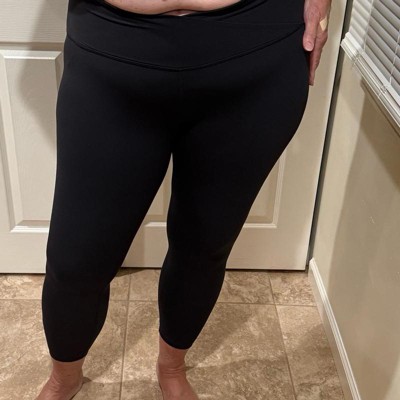 [This review was collected as part of a promotion.] I am wearing a size large in these very soft high waisted leggings. These have a Kris Kross waist and our 7/8 links on your ankles. These fit me well as I am a size 10/12. These are super soft could not stop feeling them I couldn't believe how soft they were. These are made by all in motion, which has great quality which is easily reflected in these pants and the stitching. I received an incentive to write this review.