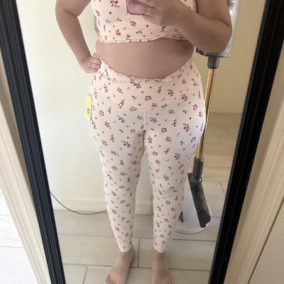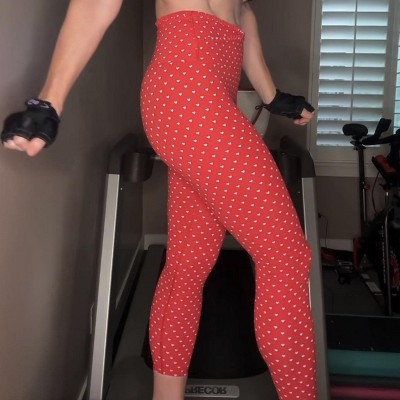 Adorable print! The red is perfect. If you’re between sizes—round up. I’m 5’7”, 140 pounds, athletic and got the medium. They’re perfect. No sheerness, great for workouts, and super cute with the coordinating top.