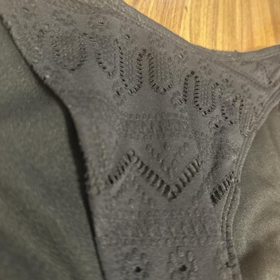 [This review was collected as part of a promotion.] My sister absolutely loves this bottom of a swimsuit. The suit itself is black and lined throughout and has almost an eyelet cut through the front and back. The nice thing is the lining is also black so you cannot tell. She typically wears a size 12 and it fits very well. It is nice because it is a higher rise but not a completely cheeky cut, it does cover some of your bum. I received an incentive to write this review.