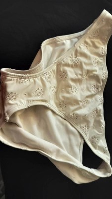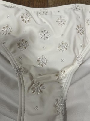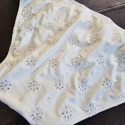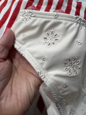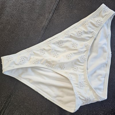Adorable eyelet, cream colored bikini bottom. Love this brand and these bottoms are beautiful! So cute and go with any color top I choose to wear. Thick bottoms with just enough coverage! A great bikini staple!