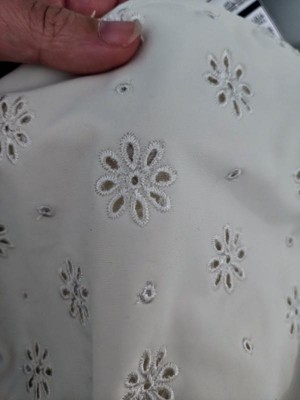 Very versatile off white swim bottom that works with a variety of tops with cute embroidered flowers throughout. This seems to be made well and white is well lined and not see through but I was surprised by the sizing as I am honestly a true Medium and somehow by the grace of God fit into an XS which is a bit of a confidence boost for me but may indicate that the sizing is a bit off for petite frames. Other than that I like the material, pattern is very forgiving and cut is flattering although I may try going up a size. Overall I'd recommend if you are looking for a cute swim bottom but be wary of sizing and size up if in between. As a disclaimer, this product was provided in exchange for my honest review. Any opinions are my own.