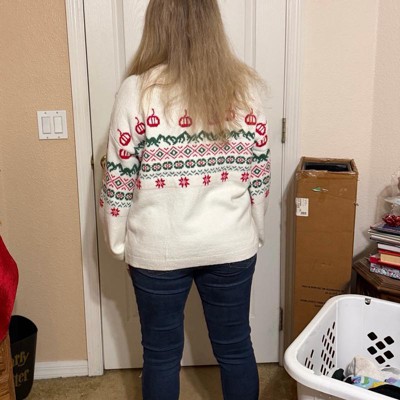 [This review was collected as part of a promotion.] This women’s fair isle holiday matching sweater is so so cute on me! The length of it is perfect and the fabric is super soft and comfortable…making it my new favorite Christmas sweater! I usually wear a size extra extra large (XXL), so i ordered a size extra extra large (XXL) and it fit perfectly…making it true to size!