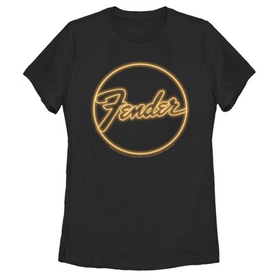 Get ready to hum, strum, and succumb to officially licensed Fender styles! If you've always wanted your very own Stratocaster guitar, now is your chance to get one! Or... at least get one on a rockin' tee! This Women's Circle Logo Tee features a distressed graphic of the Fender logo in a circle with the silhouette of a guitar head.