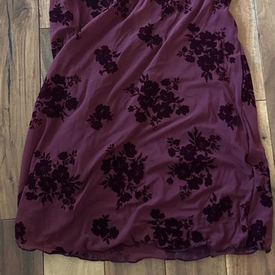 Look and feel your absolute best in this Flocked Lingerie Slip Dress from Auden™. This lingerie slip dress showcases allover flocked flower accents with lettuce-trim detailing on the hem for a lovely look. Made of soft nylon-spandex blend knit fabric with mesh liner, this flocked slip dress offers comfortable wear that moves with you. Showcasing a flattering V-neckline, it also has adjustable straps and a back hook-and-loop closure to help you find the right fit.