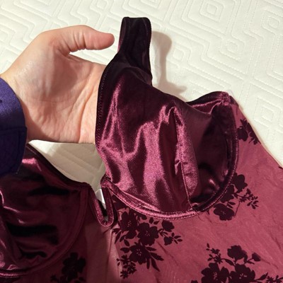 [This review was collected as part of a promotion.] This flocked lingerie slip dress is a beautiful find! I ordered the black in size XL. The velvet and nylon-spandex fabric are both very soft and comfortable. Since the cups are made of the velvet fabric and unlined, they are less fitted and can be floppy if you’re like me and don’t fill them out. I love it so much though so I plan to repurchase and size down. The back clasps and straps are adjustable which gives flexibility in fit!