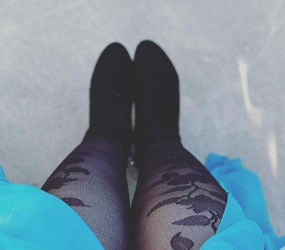 • Black tights with florals add a standout accessory to your wardrobe