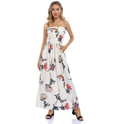 Women's Floral Casual Beach Party Maxi Dress White Floral XL