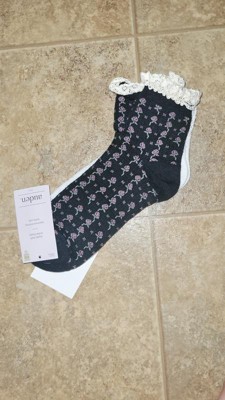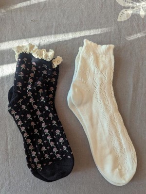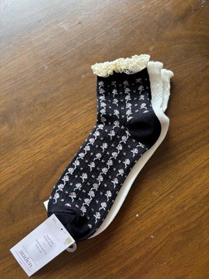 Upgrade your sock collection with the Women's Floral Lace and Pointelle 2pk Ankle Socks from Auden™ 4-10. Made from a soft blend of viscose, polyester, nylon and spandex, these lace and knit ankle socks offer a breathable and lightweight feel. Featuring delicate floral lace and intricate pointelle details, they bring a charming look and vibe to your look in an instant. Designed with rib cuffs for a secure yet comfortable fit, these midweight socks are great for pairing with your favorite shoes or lazy days at home.