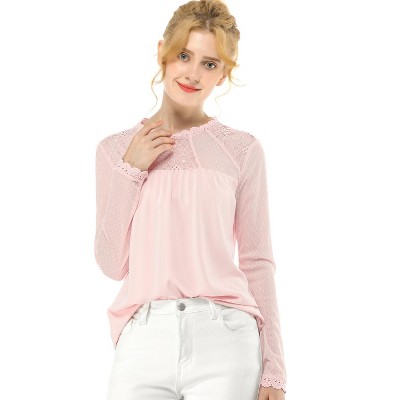 Women's Floral Lace Scalloped V Neck Top - Cupshe-XL-Pink