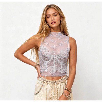 A blend of allure and comfort, this women's lace top combines 80% polyamide + 20% spandex for a soft, stretchy fabric that hugs your curves beautifully. The delicate sheer floral lace and solid color create a sexy yet elegant look, while the baby overlock edge ensures a polished, durable finish.