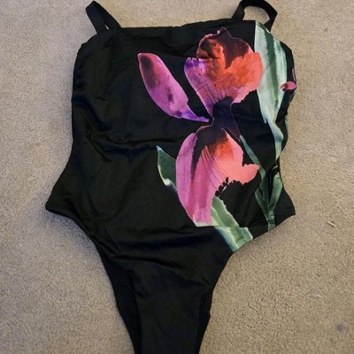 Women's Floral Print High Shine Straight Neck Medium Coverage One Piece Swimsuit - Shade & Shore™ Black - 2 of 4Women's Floral Print High Shine Straight Neck Medium Coverage One Piece Swimsuit - Shade & Shore™ Black - 3 of 4Women's Floral Print High Shine Straight Neck Medium Coverage One Piece Swimsuit - Shade & Shore™ Black - 4 of 4