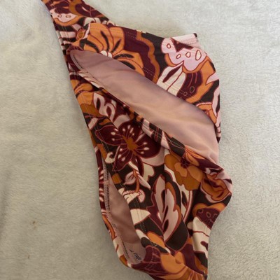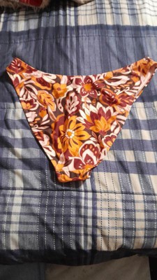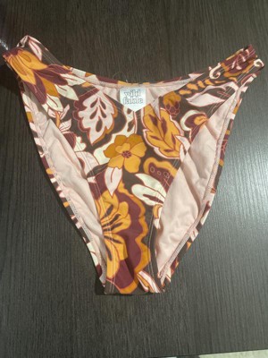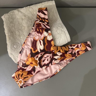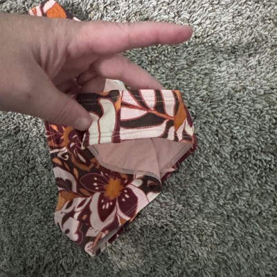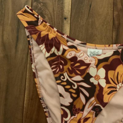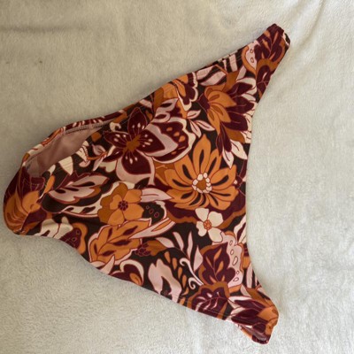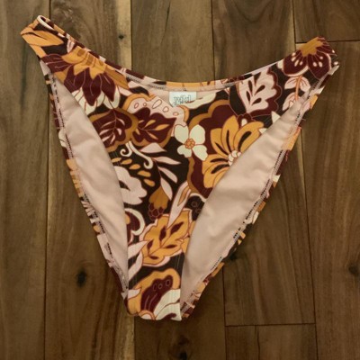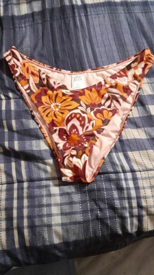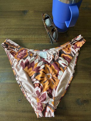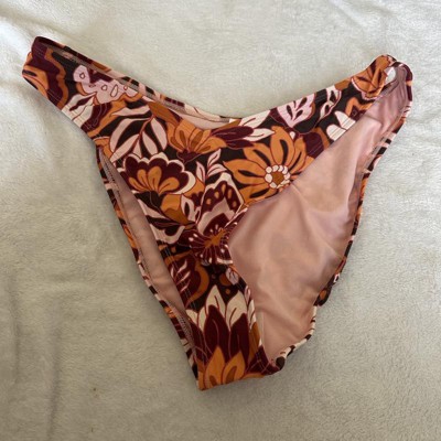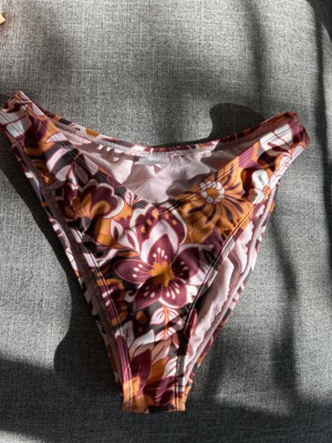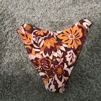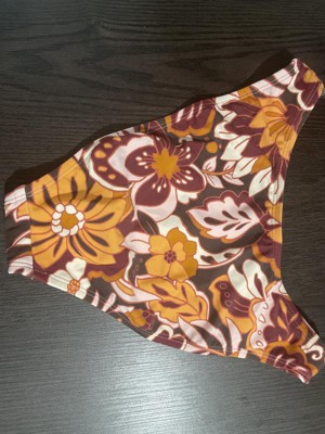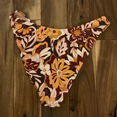 Brown bikini bottom from Wild Fable™ covered with floral print. Made of nylon-spandex fabric with full lining for comfortable wear all through your activities. Pull-on bottom is low rise with an extra high-leg design and extra cheeky coverage.
