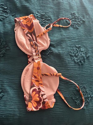 Brown bikini top from Wild Fable™ covered with floral print. Made of nylon-spandex fabric with full lining for comfortable wear. Adjustable straps with back hook offer a nice fit. Underwired design offers the right support and removable cups help provide customizable coverage.