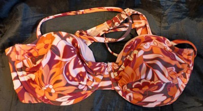 Wild fable, underwire bikini top in brown floral. This one is in a size medium. It fits like a bra With underwire. I like the colors and looks cute with many different colored bottoms. It is padded and the pads are removable. The strap is adjustable.