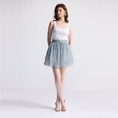 LEVEN SIXTEEN Women's Flowy Handkerchief Hem Midi Skirt - Asymmetric Boho Chic A-Line Skirt Blue Feather Print