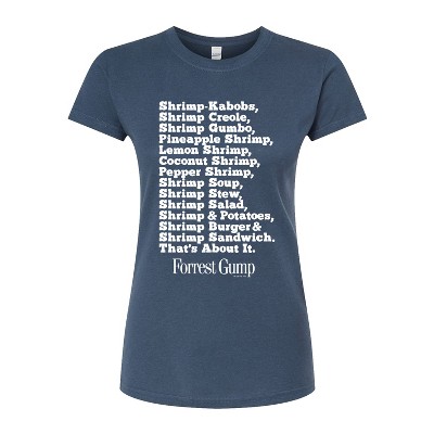 Forrest Gump - Bubbas Shrimp List - Women's Short Sleeve Graphic T-Shirt - Run, Forrest, run with Forrest Gump graphic apparel! Featuring Forrest and iconic moments like the box of chocolates quote, these designs highlight the heartwarming story and unforgettable characters from the Academy Award-winning film.