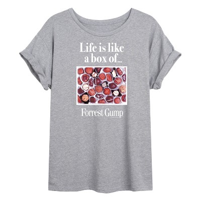 Women's Forrest Gump Life Is Like A Box Of Chocolates Short Sleeve Graphic T-Shirt - Heather Juniper - Medium