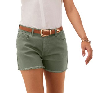 Feel comfy wherever you go with these easy-going denim shorts. * Mid-rise and relaxed fit * Frayed hem * Button and zipper front closure * Front and back pockets * Stretch denim fabric * Belt not included * Inside leg length approx. 2.75 inches * 98% Cotton, 2% Elastane. Imported. * Machine washable