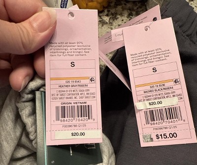 Peel off the sticker to find the original tag for $15. They put a new white sticker tag on it that’s now $20. Just peel it back to reveal the $15 original price before they raised it. Nearly every item is now marked $5 more in women’s clothing. Love the shorts. The fit is nothing to write about but the material is buttery soft and super comfortable. My only complaint is it’s overpriced. I’m noticing more and more of these price increases. They also ripped off the tag that has the original price on it on some of their other clothing merch. This is because of dynamic pricing strategies they employ to increase the price as they please. It an item performs well, they will increase the price. There is no longer a set retail price unfortunately. This is the new standard for retail.