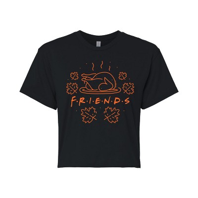 Friends - Cornucopia - Juniors Cropped Cotton Blend T-Shirt - Celebrate the essence of Warner Bros.'s Friends with officially licensed apparel featuring unique designs crafted exclusively by Hybrid Apparel. Each piece brings beloved characters, iconic imagery, and memorable moments to life, offering Friends fans a one-of-a-kind way to showcase their passion.