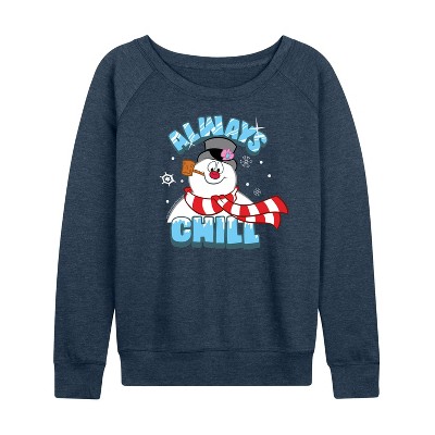 Frosty The Snowman - Christmas - Chill Vibes - Women's Lightweight French Terry Long Sleeve Shirt - Celebrate the essence of Warner Bros.'s Frosty the Snowman with officially licensed apparel featuring unique designs crafted exclusively by Hybrid Apparel. Each piece brings beloved characters, iconic imagery, and memorable moments to life, offering Frosty the Snowman fans a one-of-a-kind way to showcase their passion.