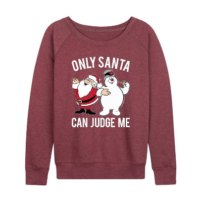 Women's Frosty The Snowman Christmas Lightweight French Terry Wide Neck Long Sleeve Graphic Shirt - Heather Charcoal - Small