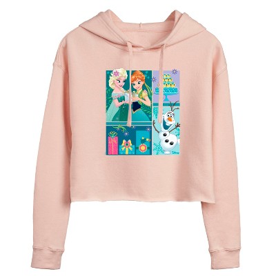 Women's Frozen 2 Warms Hugs With Olaf Cropped Graphic Hoodie - Blush - Small