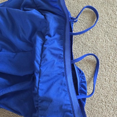Full-coverage shortie one-piece swimsuit from Wild Fable™ in blue. Made from nylon tricot fabric with spandex and recycled polyester lining for stretchy comfort. Removable cups provide customizable coverage. Adjustable straps make it easy to find the perfect fit.