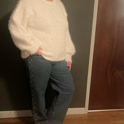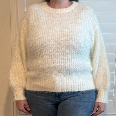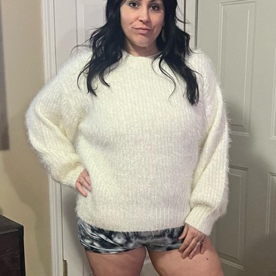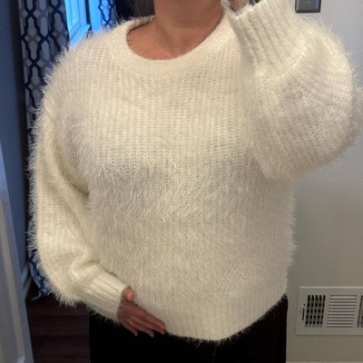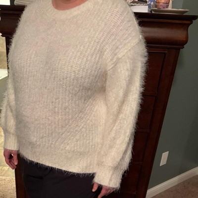 Women's Long Sleeve Crewneck Fuzzy Pullover Sweater - Ava & Viv™ Ivory