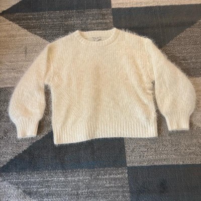 White fuzzy and soft sweater with loose sleeve
