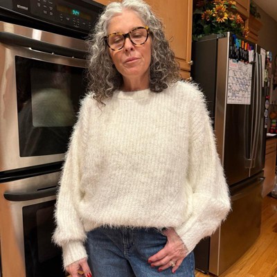Women's Long Sleeve Crewneck Fuzzy Pullover Sweater - Ava & Viv™ Ivory - 2 of 3Women's Long Sleeve Crewneck Fuzzy Pullover Sweater - Ava & Viv™ Ivory - 3 of 3