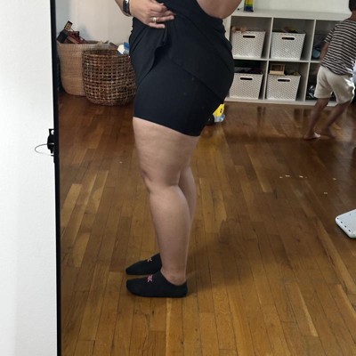 I liked the material and stretch of this active dress. I also liked the neckline and low back, and the front slit is really cute and flirty. Sadly, I had to return. It was way, WAY too short on me. I am a little over 5'8" with long legs. The skirt barely covered my booty standing straight, and the front was above upper thigh considerably. I am thin and have no booty or hips. Also, this isn't long-torso friendly. To get the waist seam in the correct place, and the neckline to sit right, I had to hike it way up, which created widgies from back to front, lol. Not only is that uncomfortable, but it's not a pleasant sight to see if the skirt portion flips up while walking or from wind. However, I think if you're 5'6" or under this will work for you.