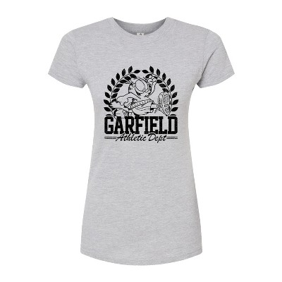 Garfield - Ath Dept Running - Juniors Fitted Graphic T-Shirt - Bring the humor and laziness of the famous orange cat to your wardrobe with Garfield graphic apparel. Featuring Garfield, Odie, and Jon, these designs celebrate the iconic comic strip and its beloved characters.