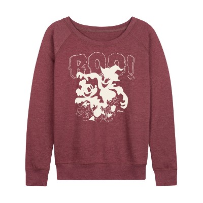 Women's Garfield Boo Lightweight French Terry Wide Neck Long Sleeve Graphic Shirt - Heather Maroon - X-Large