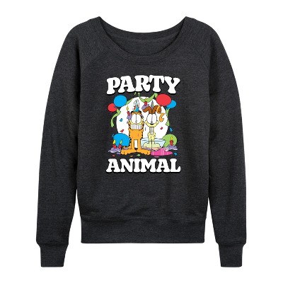 Women's Garfield Game On Lightweight French Terry Wide Neck Long Sleeve Graphic Shirt - Heather Charcoal - 2 X-Large