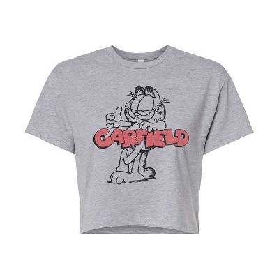 Women's Garfield Garfield Skater Logo Cropped Graphic T-Shirt - Heather Grey - Large
