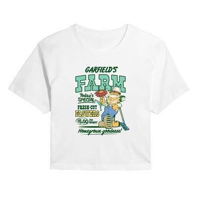 Garfield - Garfields Farm - Women's Short Sleeve Graphic T-Shirt - Bring the humor and laziness of the famous orange cat to your wardrobe with Garfield graphic apparel. Featuring Garfield, Odie, and Jon, these designs celebrate the iconic comic strip and its beloved characters.
