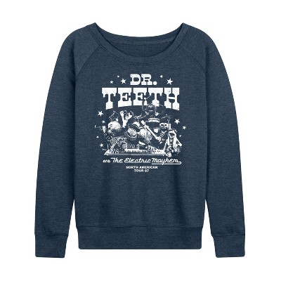 Women's Garfield I'm A Delight Lightweight French Terry Wide Neck Long Sleeve Graphic Shirt - Heather Indigo - Large