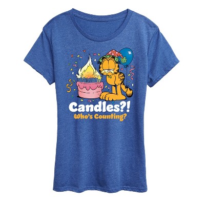 Women's Garfield Just Here For Cake Short Sleeve Graphic T-Shirt - Heather Royal Blue - X-Large
